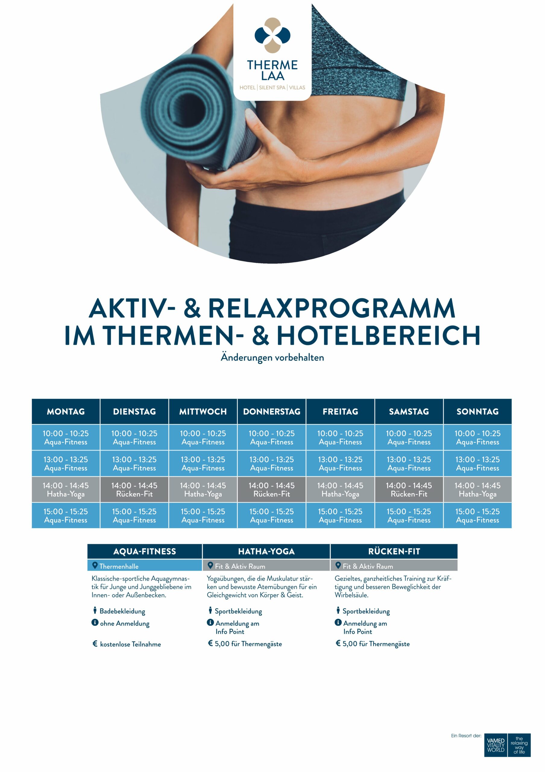 Discover yoga for beginners at Therme Laa: a gentle introduction to yoga in the fitness and activity programme. Professional guidance included.